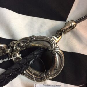 LEATHER TIE BELT W/CHUNKY ORNATE HARDWARE