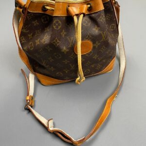 1970S-80S *AS-IS* RETRO LOUIS VUITTON MONOGRAM DRAWSTRING BUCKET BAG, SUEDE INTERIOR