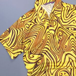 AMAZING! 2 PIECE SHEER NEWSPRINT MESH BUTTONED LONG SLEEVE TOP & PANTS SET KNIT COLLAR