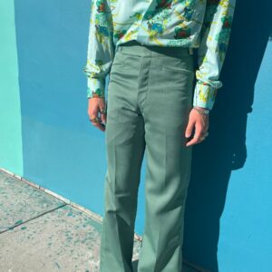 1970S DEADSTOCK NWT GREEN FRONT PLEAT HAND TAILORED WIDE LEG TROUSER PANTS