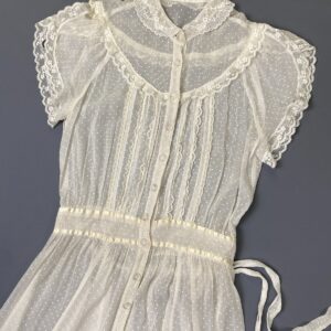 BEAUTIFUL SHEER MICRO POLKADOT CHIFFON DRESS W/ LACE TRIM