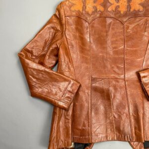 GORGEOUS! 1960S-70S BUTTER SOFT LEATHER BLAZER JACKET DECORATIVE OSTRICH LEATHER CUT-OUT PANELS, BEAUTIFUL SATIN LINING