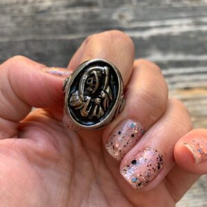 EQUINE HORSE HEAD BLACK ENAMEL THREE SIDED RING WITH COWBOY BOOTS AND HAT EQUESTRIAN