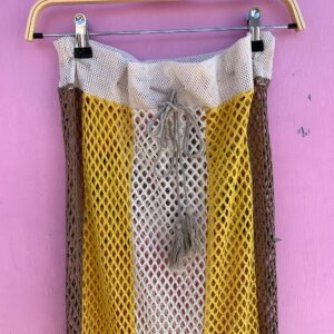 SWEET! MULTI-TONED VERTICAL STRIPED NETTED MAXI SKIRT FRINGED ENDS