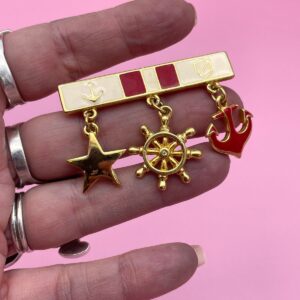 1980S ENAMELED NAUTICAL TIE BAR BROOCH PIN, HANGING CHARMS *SIGNED