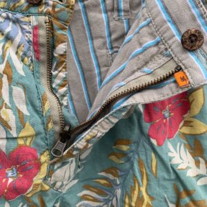REVERSIBLE! VERTICAL STRIPED & TROPICAL PRINT COTTON BERMUDA SHORTS