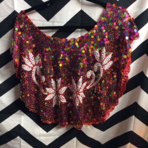 TOP – PULLOVER – UNIQUE – COVERED W/SEQUINS – FRONT FLOWER DESIGN – SCALLOPED EDGE NECK/SLEEVES/BOTTON