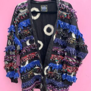 AMAZING 1990S REVERSIBLE SHAGGY TEXTILE BUTTON UP CARDIGAN JACKET