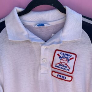 RETRO 1981 ADIDAS SOFTBALL PATCHED SPORTS POLO SHIRT WITH SLEEVE STRIPES
