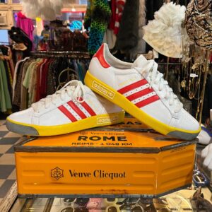 ADIDAS FOREST HILLS WHITE LEATHER W/ RED STRIPES AND YELLOW BOTTOM LACE UP SNEAKER SHOES REISSUE