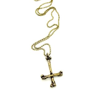 INVERTED BONE CROSS SOLID BRASS PENDANT NECKLACE