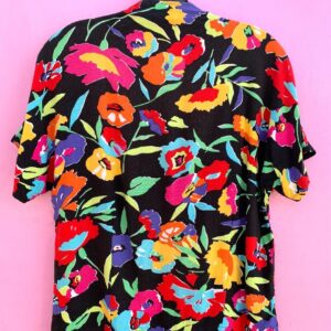 1980S SHORT FLORAL PRINT BUTTON UP SHORT SLEEVE BLOUSE