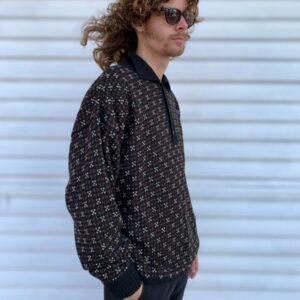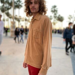 AS IS VELOUR QUARTER BUTTON COLLARED SHIRT FRONT POCKET