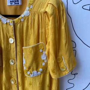 1980S POLKADOT BUTTON UP SHIFT DRESS W/ POCKETS & CONTRAST PIPING
