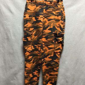 TAPERED & STRETCH ORANGE HUNTING CAMOUFLAGE PRINT CARGO PANTS ELASTIC CUFFS