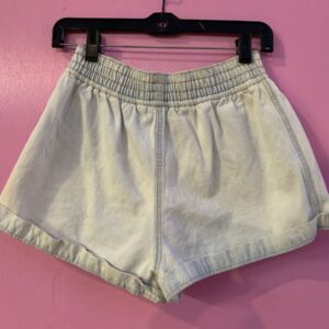 ADORABLE 1980S LIGHT WASH CUFFED DENIM HIGH WAIST FRONT POCKET SHORTS W/ ELASTIC WAIST