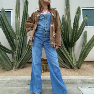 1970S FRONT BUTTON PLACKET DENIM WIDE LEG OVERALLS WITH CARGO POCKETS