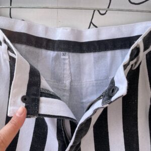 AMAZING! BLACK & WHITE VERTICAL STRIPED BURALP COTTON PANTS WITH CARGO POCKETS