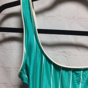 ONE PIECE BATHING SUIT W/ VERTICAL STRIPES & THIN TRIM STRIPE NECK/ARMS