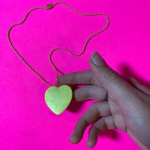CUTE VINTAGE YELLOW PLASTIC HEART CHARM NECKLACE DEADSTOCK FRENCH CHAIN NECKLACE