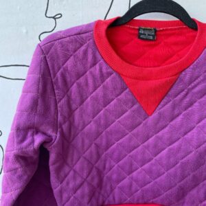 CUTE RECONSTRUCTED CROPPED QUILTED CREWNECK SWEATSHIRT CONTRAST COLORING