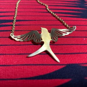 BRASS CUT OUT SOARING SPARROW BIRD PENDANT NECKLACE