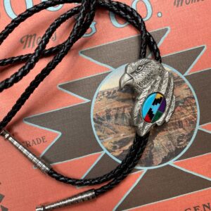 UNIQUE EAGLE BOLO TIE, COLORFUL ZUNI STYLE MULTI STONE INLAY *SIGNED