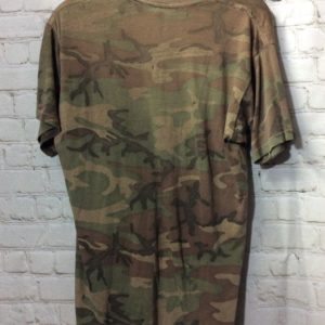T-SHIRT W/ CAMO DESIGN & FRONT POCKET FRAYED