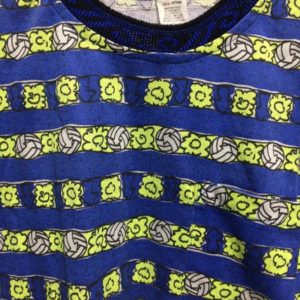 NEON COLORED VOLLEYBALL PRINT IN HORIZONTAL STRIPES T-SHIRT W/ FRONT POCKET