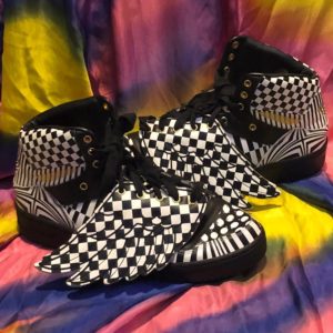 ADIDAS ORIGINALS BY JEREMY SCOTT CHECKERED WINGS HIGH TOP SNEAKERS
