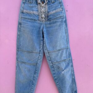 UNIQUE! 1980S HIGH WAIST LACE FRONT DOUBLE KNEE TAPERED DENIM JEANS