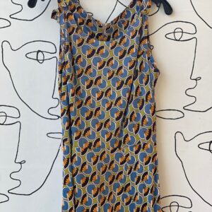 SUPER CUTE ABSTRACT FAN PRINT SLEEVELESS MIDI DRESS WITH RUFFLE TRIM