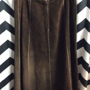 1970’S SKIRT – A-LINE – MIDI – SUEDE W/CONTRASTING STITCHING