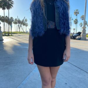 FUNKY COOL LEATHER TRIMMED INDIGO MONSTER FUR VEST