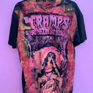 TIE DYE THE CRAMPS W/ MONSTER FACE GIRL ON DRUMS BACK GRAPHIC HANDPAINTED T-SHIRT