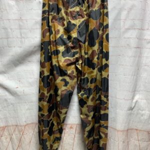 CABELAS NYLON CAMO PRINT PANTS W/ DRAW STRING & SNAP-UP BOTTOMS