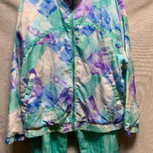 1980S-90S WATERCOLOR BRUSH STROKE PRINT 2 PIECE NYLON TRACK SUIT AS-IS