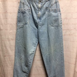 SOFT DENIM PANTS W/ ELASTIC WAIST AT SIDES & STUD EMBELLISHED