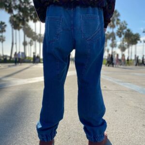 ELASTIC WAIST DRAWSTRING DENIM KNIT JOGGERS