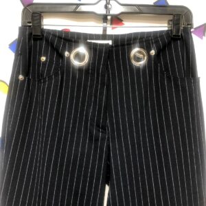 PINSTRIPED STRAIGHT LEG TROUSERS W/ HOOK EYE ZIP CLOSURE