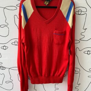 SUPER RETRO COLOR BLOCK V-NECK PULLOVER POCKET SWEATER