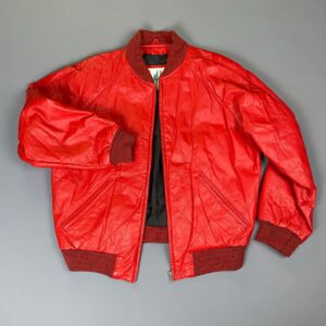 RAD! 1980S-90S LIPSTICK RED QUILTED LEATHER BOMBER JACKET MARLED RIBBED CUFFS & COLLAR