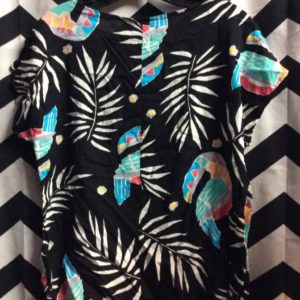 RAYON PULLOVER TOP W/ LEAF & BIRD PATTERN