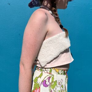 Y2K SOFT SHERPA LINED PINK MICROSUEDE LACE UP SIDES MICRO MINI SKIRT