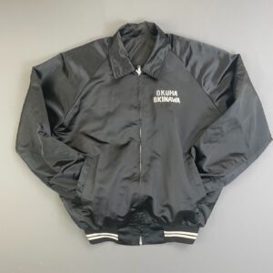 1980S EMBROIDERED ASHTON-TATE SOFTWARE COMPANY ACETATE ZIP-UP JACKET, SILVER PIPING