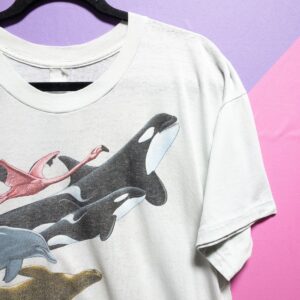 *AS-IS* 1980S PAPERTHIN HARLEQUIN WILDLIFE FRONT & BACK GRAPHIC T SHIRT