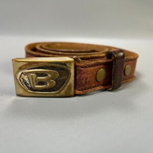 NARROW CUT SOFT LEATHER BELT SOLID STAMPED BRASS B INITIAL SLIDE BUCKLE