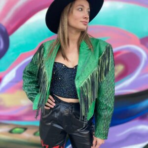 RAD CUSTOM HAND PAINTED DRAGON SCALE STUDDED FRINGE LEATHER JACKET