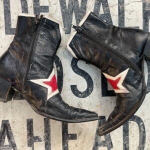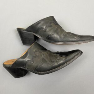 1990S CUTOUT LEATHER WINKLEPICKER MULE SLIDE WESTERN BOOTIES