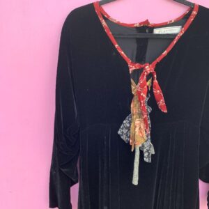 1990S SLOUCHY VELVET LONG SLEEVE DRESS MIXED FABRIC TIES & TRIM